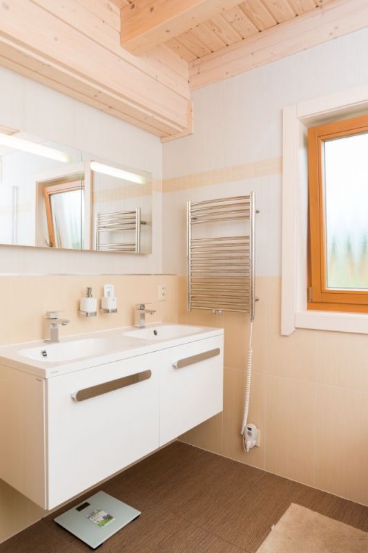 Interiér jsem chtěla praktický a moderní, co nejsnáze udržovatelný. Na staré věci máme vyhrazený pokoj pro hosty, kde stojí vitrína s památkami po babičkách. Jinak jsme se drželi moderního stylu, kombinujeme tu dřevo i kov. Dřevěné konstrukční prvky, stěny a stropy jsou ošetřené světlou lazurou. Dřevo totiž přirozeně tmavne, zatímco bílá barva prostor vždycky spolehlivě prosvětlí. I když je venku pošmourno, což tady na horách bývá, tak díky bělenému dřevu na zdech i stropech nemusíme přes den svítit.