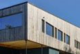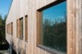 Skladba stěny (směrem zevnitř): sádrokarton, 8 cm minerální vata, OSB deska, nosná konstrukce vyplněná vatou, laťování vyplněné vatou, difuzní folie, laťování pod fasádou, fasáda z modřínových palubek