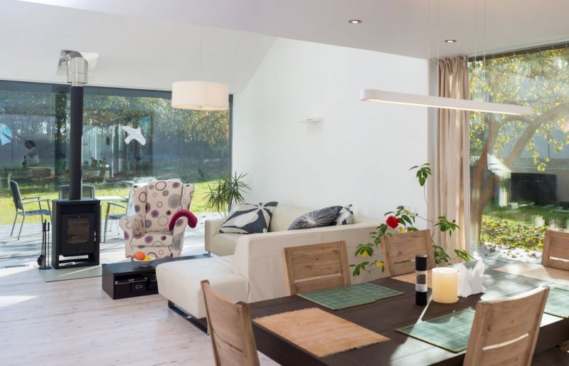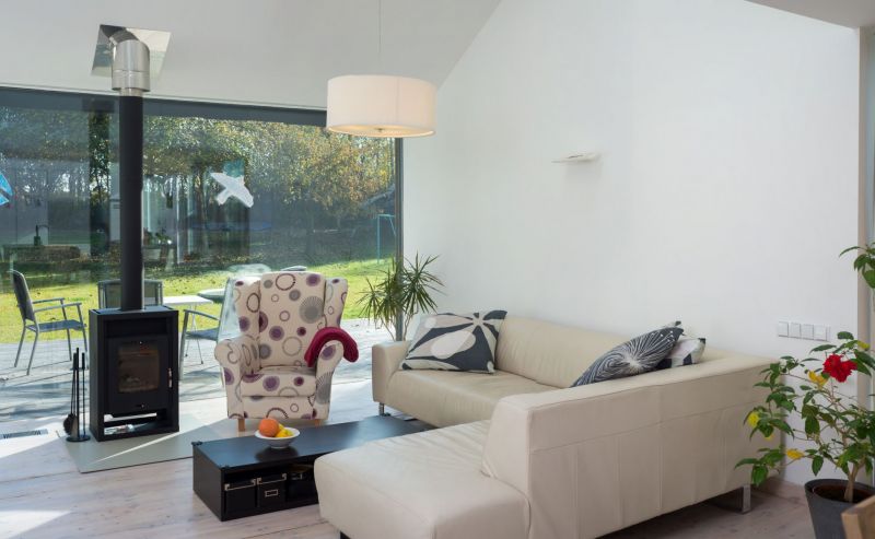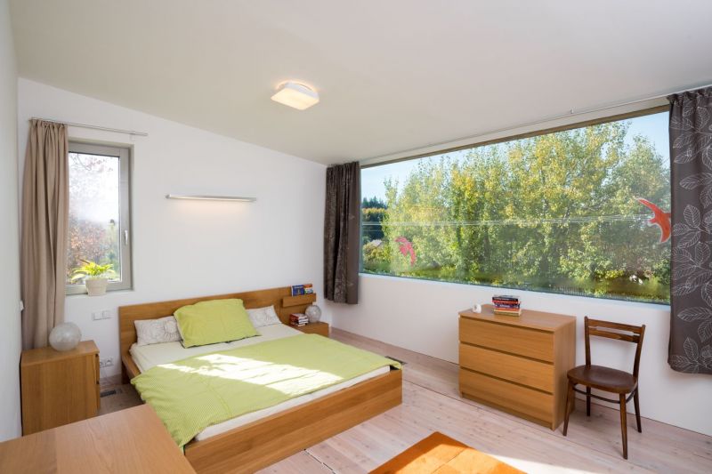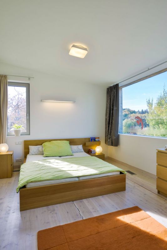 Dům je nízkoenergetický a zdrojem tepla je elektrický kotel. O rozvedení tepla se stará vzduchotechnika s rekuperací. Zpočátku bylo třeba systém vyladit, aby topil tak akorát a současně nebyl příliš hlučný. Jsem totiž na jakýkoli rušivý zvuk citlivý. Nyní je to však v nejlepším pořádku. Energetická náročnost stavby splnila má očekávání. Celková ztráta domu je pouhých 6 kW, a tak jsou náklady na provoz relativně malé. Je pravda, že nepřetápíme, stačí nám teplota přes den 21 a v noci 19 stupňů. Všude jsou okna s trojskly a klima v domě je příjemné. Během zimy vůbec nevětráme okny a v domě je stále kvalitní vzduch.