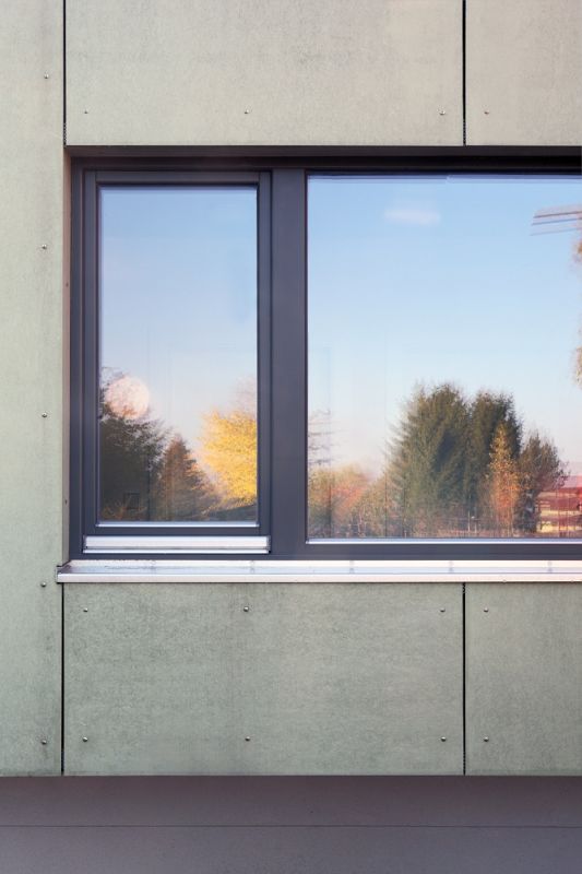 Skladba stěny (směrem zevnitř) sádrokartonové desky, instalační rošt + izolace, OSB desky, nosná konstrukce z fošen 40×140mm + izolace, vodorovný rošt + izolace, pojistná hydroizolace, provětrávaná mezera, fasádní obklad (desky Cembonit nebo modřínové palubky)