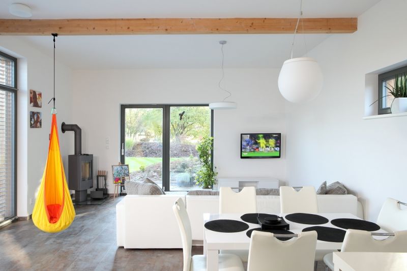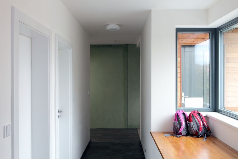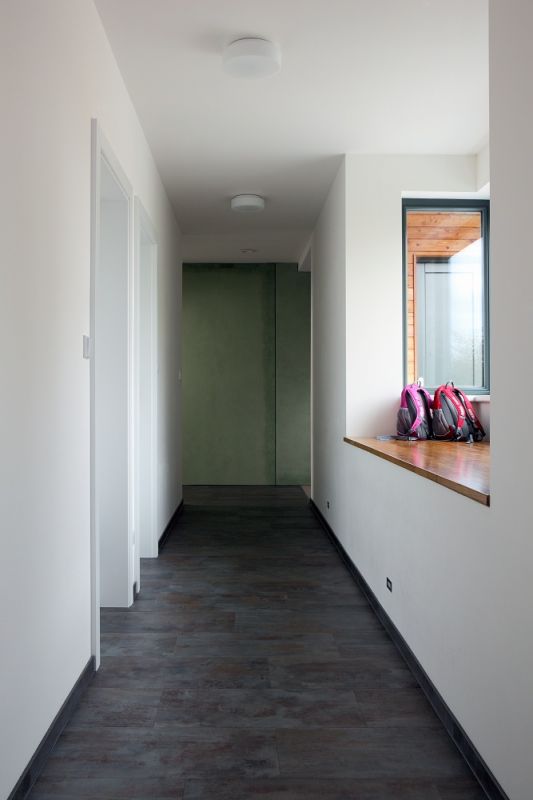 Interiérem se zabýval Miroslav dlouho. Vybíral i podle časopisů, rozhodnout se ale sám nedokázal. Podpis architekta je proto patrný i v prvcích vnitřního zařízení. „Vnímám ten prostor, polohu dětí i moji v něm, a myslím, že práce architekta i stavební firmy dalece přesáhla moje představy. Nemusel jsem se, a stále nemusím, prakticky téměř o nic starat, jen zaplatím elektřinu a občas nechám vyvézt jímku. Cítíme se tu šťastni a spokojeni, neměnil bych; vůbec nic. Zůstal mi ještě sen o zimní zahradě a musíme dodělat zastínění terasy. Ale už si začínám pohrávat s myšlenkou na další dřevostavbu. Tentokrát něco z kategorie roubenky; máme totiž rádi hory a chceme tam mít nějaké víkendové doupě."