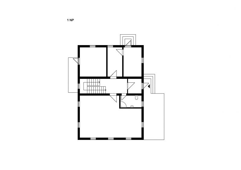 Konstrukce: nosné stěny — trámy 30 x 24 cm, strop nad 1. NP — trámy 24 x 24 cm, mezi trámy je vložena tepelněizolační vrstva minerální vlny o tloušťce 2 cm