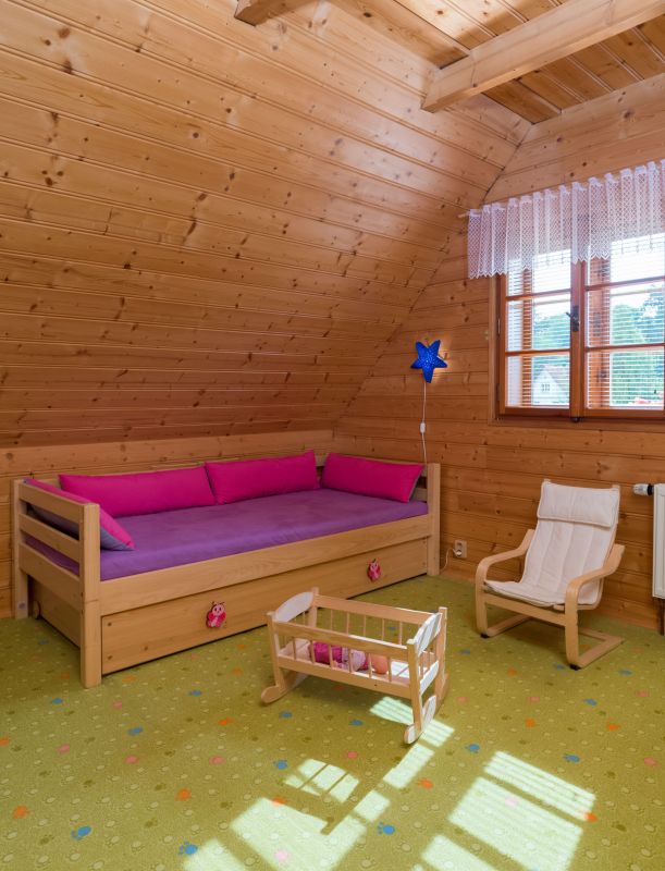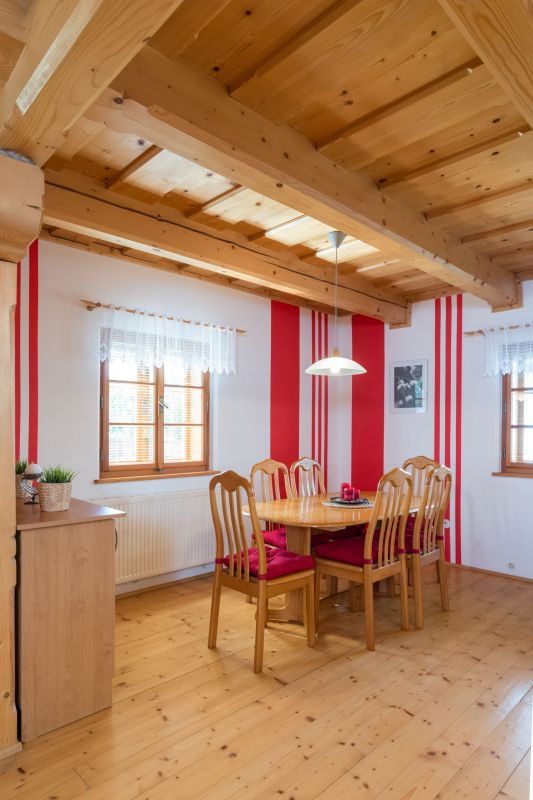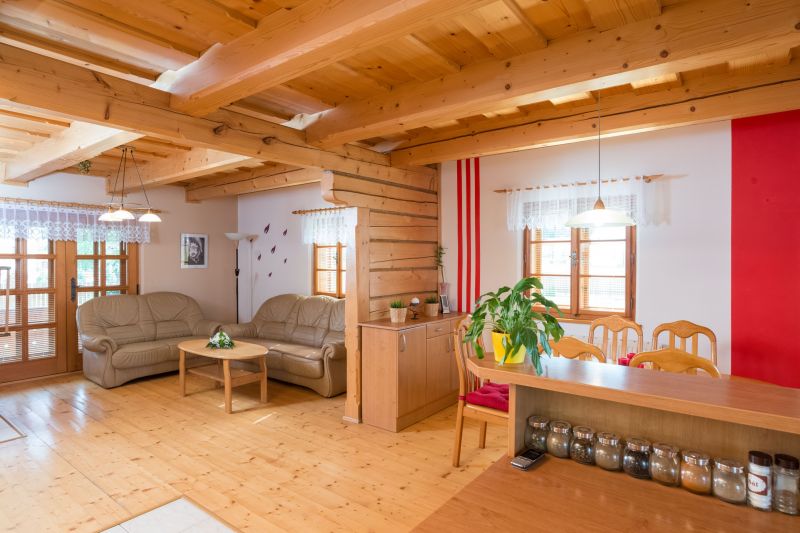 Vnitřní příčky: přízemí – smrkové trámy 160 × 260 mm, podkroví palubky 140 mm + zvuková a tepelná izolace