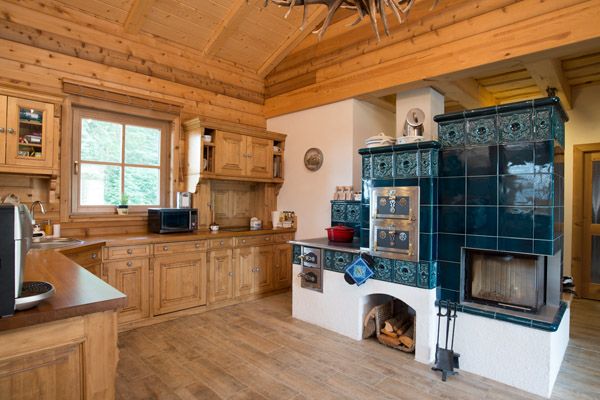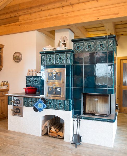 Srdcem domu jsou opticky i jako zdroj tepelné pohody v chladných dnech kachlová kamna, která dostatečně vyhřejí celý prostor. A protože v sobě mají krbovou vložku, nabízí současně i relaxaci u živého ohně. Dalším zdrojem vytápění je tepelné čerpadlo, systém země-voda, kolektor je položen na části pozemku o rozloze 40 × 15 metrů. „Vytápění domu tepelným čerpadlem ovládáme dálkově přes internet," vysvětluje Václav, „zapneme ho například den před tím, než sem jedeme, nastavíme na požadovanou teplotu a přijíždíme do tepla."