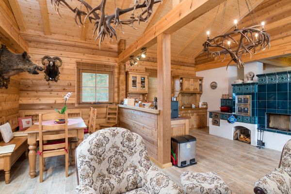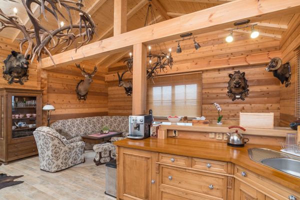 I když roubenka k lesu patří stejně jako lesní zvěř, jen málokterou z těch, které jsme dosud navštívili, zdobily lovecké trofeje. Přiznám se bez mučení, že nejsem příznivcem honů ani zmíněných trofejí v domě, ale v téhle roubence na okraji lesa s výhledem na údolí a hory jako by splývaly s prostorem. Neruší, nerozptylují, nepřekvapí, prostě tady jsou...