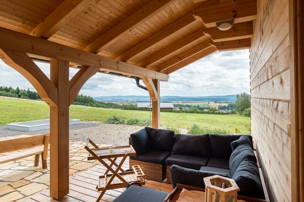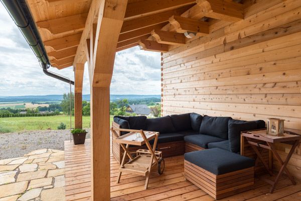 Obytným prostorem mě Jindřiška provedla ven na terasu a zde se mi teprve v plné kráse otevřel výhled na údolí a Orlické hory. Roubenka ještě voní novotou, je zkolaudovaná rok a Václav s Jindřiškou sem prozatím jezdí na víkendy a dovolené. „Zatím to takto dělíme a uvidíme, jestli tu nezůstaneme na stálo," začne vyprávět Jindřiška. „Tady si odpočinu, vezmu si knihu, doma mám výčitky svědomí, když si sednu na terasu, protože okolo domu je pořád spousta práce."