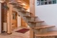 Schodiště: samonosná vyztužená monolitická osová schodnice s obkladem z flexibilního pískovce, lepené nášlapy červený dub