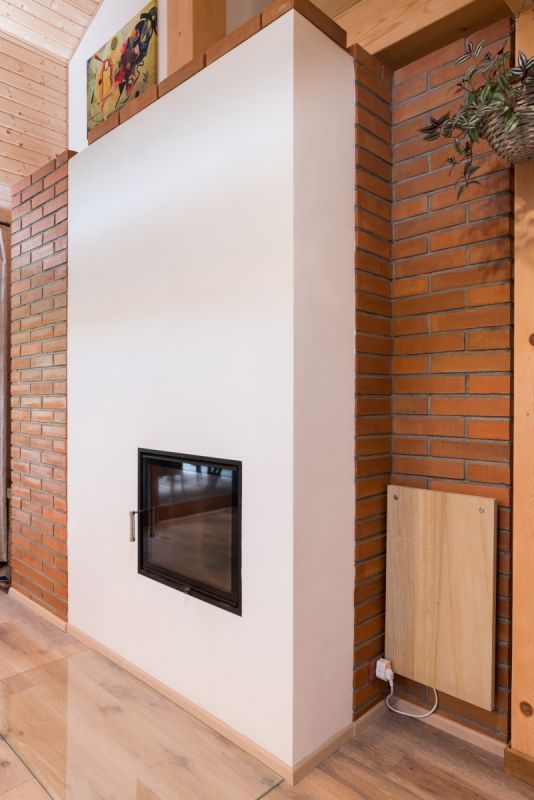 Dalším zdrojem tepla jsou krbová kamna, konstruovaná jako kachlová – je v nich více než 800 kg šamotu, přikládáme dvakrát denně a vytopíme celý dům. Uvnitř je tahový systém dlouhý 6,5 m, dvojité desky, a výkon kamen je spočítán tak, aby stačilo přiložit ráno a pak za 12 hodin, a teplota neklesla. Ovšem vzhledem k mírným zimám v posledních dvou letech je na konečný verdikt týkající se instalovaného jednoduchého systému vytápění domu příliš brzy.