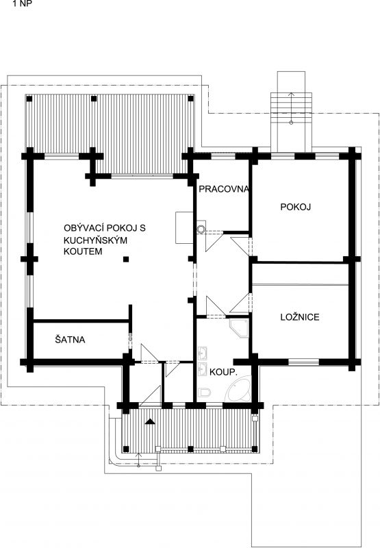 Hned na počátku návštěvy mi bylo jasné, že dnes se na vychytávky ptát nemusím, ten dům je jich plný... Protože si ho od skic vymyslel, navrhnul a částečně i zkonstruoval sám majitel, konečný projekt pak vypracovával zkušený projektant dřevostaveb. „Měl jsem jeden vzor," vysvětluje Oldřich, „výkres ruského srubu z kulatiny, který jsem uzpůsobil svým a také místním požadavkům. Ale byl to stále srub. Až později jsme se rozhodli, že uděláme roubenku. Já jsem chtěl vždycky srub, manželka roubenku, navštívili jsme tedy několik srubů a zjistili jsme, že srub by pro nás nebyl ten správný dům, a rozhodli jsme se pro roubenku."