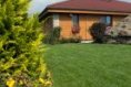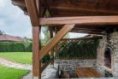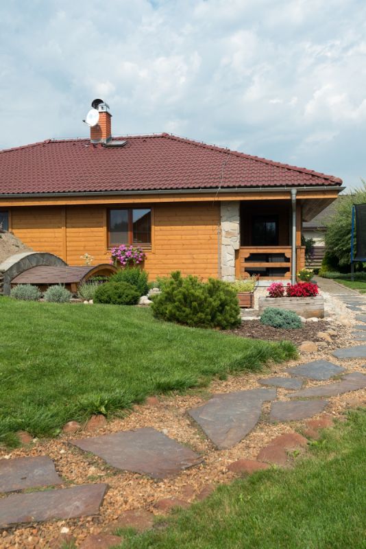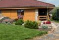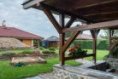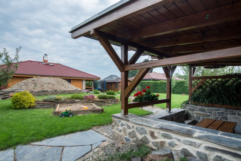 Velmi důležitou součástí rodinného bydlení je ovšem i zahrada. Během let již utvořila s domem symbiotickou jednotku, která vznikala přirozeně podle možností a potřeb rodiny. Zahrada je zčásti užitková, jsou tu zeleninové záhonky a také stromy – švestky, ryngle, a nechybí samozřejmě ani místo pro dětské hry. „Zahradu jsme s trávníkem a základní výsadbou založili asi před pěti lety, od té doby vždy něco dosadíme. Postupně jsme pak postavili plot, posezení a vysadili dřeviny okolo plotu."