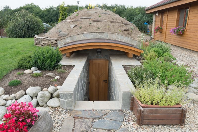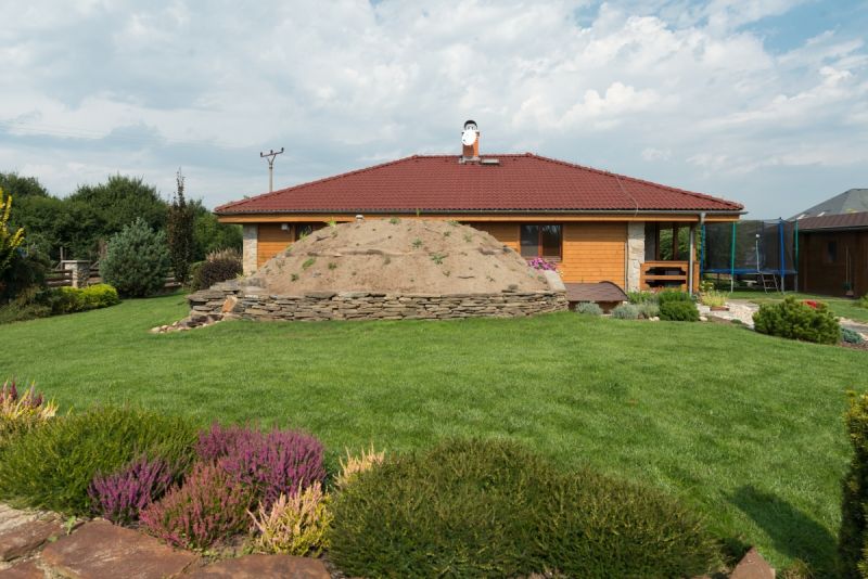 Za pozornost stojí sklípek. Je v blízkém sousedství domu a zaujme určitě každého příchozího, neboť připomíná v tom kladném slova smyslu maketu pohraničního obranného bunkru. „Původně tu mělo být koupací jezírko s biotopem a plavací zónou. Sklípek byl náhlý nápad, realizovaný před dvěma lety. Hlubší být nemohl, protože je tu vysoká spodní voda, úroveň stropu je tedy zhruba v úrovni země. Sklípek není nijak zaizolovaný, pouze pod podlahou a na vrchu klenby jsou drenáže. Ty vrchní jdou do trativodu, voda ze spodních je odváděna do jímky, která, když se naplní, je přečerpána do trativodu. Vodu nijak nevyužíváme, protože je silně železitá."