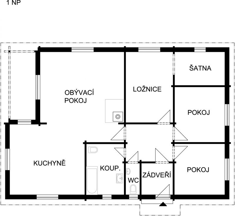 Stavební systém: obvodové stěny – srubová konstrukce ze sušených hranolů s tepelnou izolací a obkladem; příčky – srubová konstrukce ze sušených hranolů