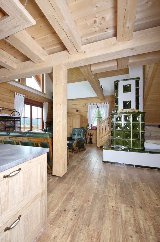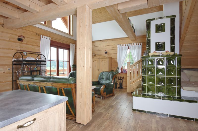 Stavební systém: roubená konstrukce ze syrového smrkového dřeva