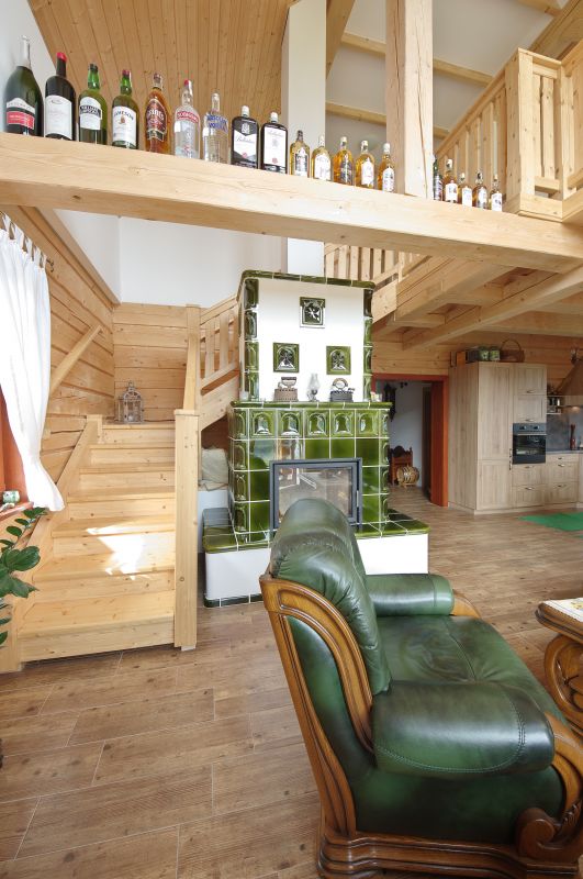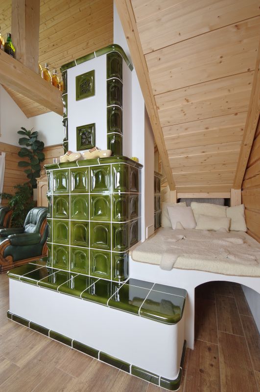 A za kamny máme takovou zašívárnu... Kachlová kamna si manželka navrhla sama. Trochu jsme se báli, že budou příliš velká, ale nakonec je to velmi pěkná součást vybavení místnosti. A měli jsme představu, sen z pohádek, kde sedí pecivál za kamny, tak jsme si k nim pořídili takové zápecí. Leželi jsme tam však zatím asi jednou...ale když přijede návštěva s dětmi, tak tam hned zalezou a už o nich nevíme.