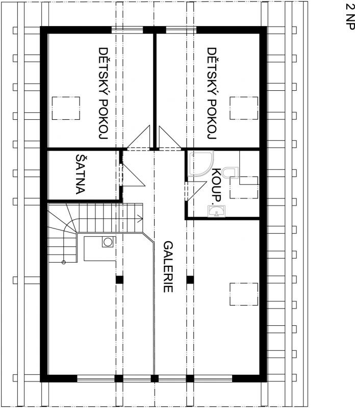 Vnitřní příčky: přízemí pórobeton, podkroví sádrokartonové