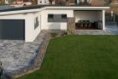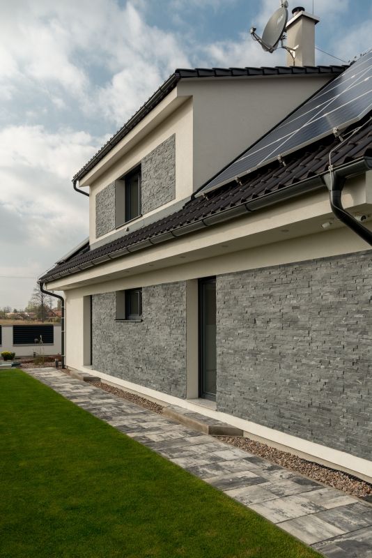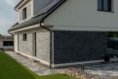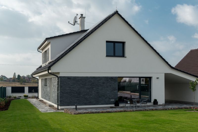 Fasáda: obklad přírodním kámen v kombinaci akrylátovou tenkovrstvou omítkou