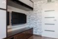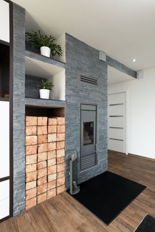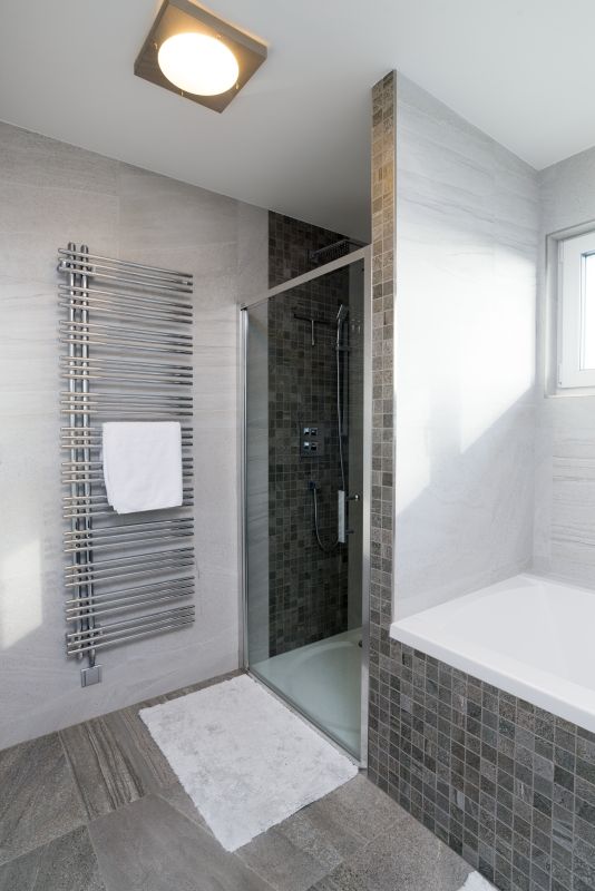 Skladba stěny (směrem zevnitř): Fermacell 12,5 mm, parozábrana, rám z KVH profilů 60 x 140 mm, vyplněný minerální vatou 140 mm, Fermacell 12,5 mm, polystyren 250 mm resp. 270 mm šedý, fasáda alt. obklad přírodním kamenem
