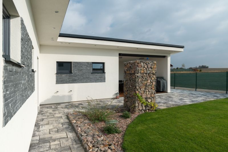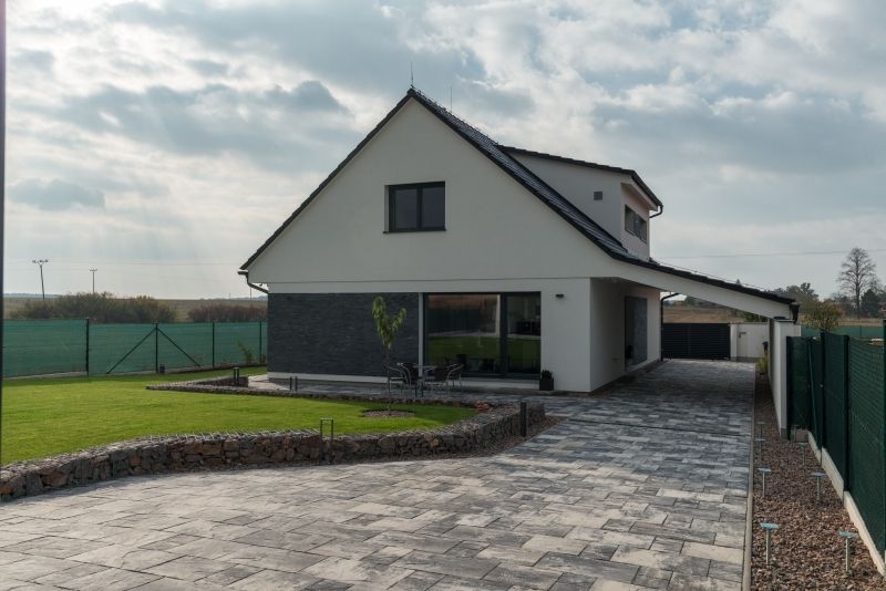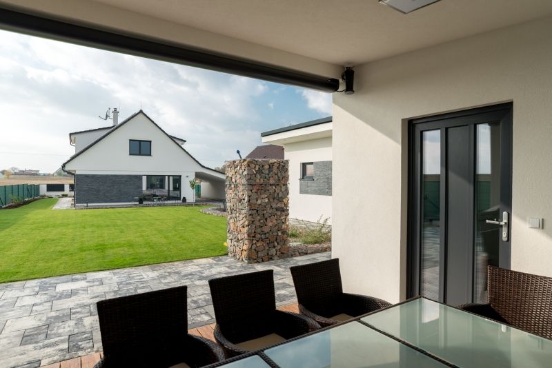 Jsem velmi zklamaný z venkovní dlažby. Mým záměrem bylo, aby se hodila ke vzhledu domu a vybral jsem proto betonovou. V praxi se ale ukázalo, že se velmi rychle špiní a skoro nic z ní nejde vyčistit. Doporučil bych tedy stavebníkům: chcete-li po dlažbě chodit a jezdit, vyberte jinou. Satisfakcí mi ale byla kuchyně, kterou jsem zvolil vestavěnou. Jednak jsou v ní schované rozvody vzduchotechniky, ale hlavně jsem dostal pochvalu od manželky za to, že jsem minimalizoval plochy, kde by musela utírat prach. Obdobně praktickou se ukázala absence záclon či závěsů. Stínění máme řešeno předokenními roletami a do budoucna zvažuji v některých místnostech použití japonských stěn či nejmodernějších rolet typu zebra (tzv. Den a noc nebo také Duo roleta; pozn. redakce). Je to velmi praktické, s jednoduchou montáží přímo na okenní křídlo bez nutnosti vrtání. Neztrácíte tak záruku na okna.