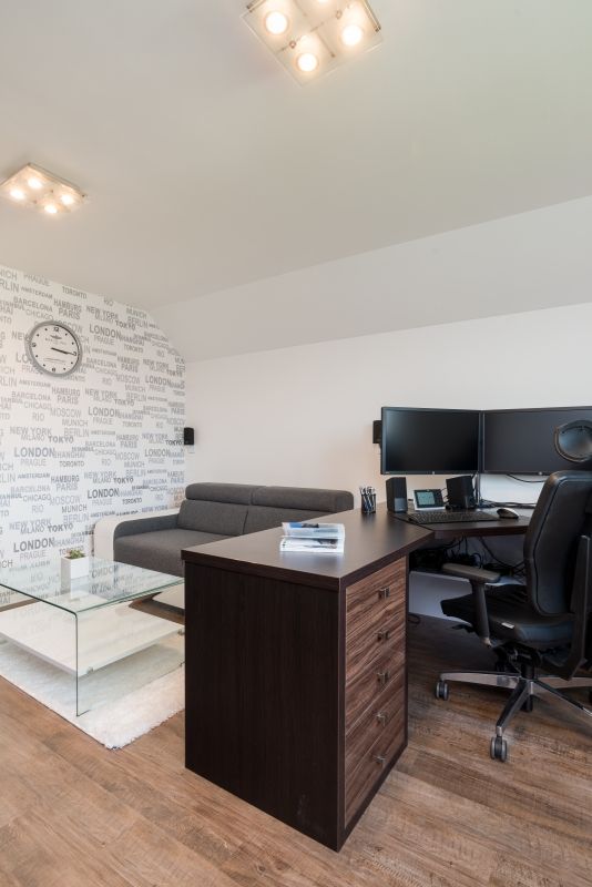 Dlouhou chodbu se schodištěm mohu všem otcům jenom doporučit. Náramně si v ní se synem vyhrajeme při posílání autíček nebo při hraní hokeje a fotbalu. Nejvíce máme se ženou rádi kuchyni s jídelnou a obývací prostor propojený s výhledem na zahradu. Po tom jsme vždy oba toužili a idylka, kdy po práci sedíte na zahradě a koukáte, jak si děti venku hrají, je k nezaplacení. V létě je to posezení v zahradním domku, kterému s láskou říkáme „chlastánek". Máme ho propojený s posilovnou, dílnou a garáží, což se ukázalo jako praktické. Já osobně mám rád takové ty technické serepetičky, jako je ovládání světel, rolet, kamer či zabezpečení z mobilního telefonu nebo počítače. Člověk samo sebou ví, že se bez toho dá žít, ale občas si chce udělat radost sledováním výkonu a příkonu spotřebičů, zisků a ztrát a tak podobně. Ale varná konvice zatím na dálku „nejede", i když bych věděl, jak to udělat.