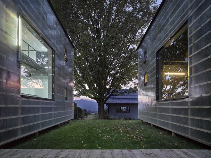 Lze pohodlně žít v domě širokém necelé tři metry? Otázka, na kterou odpovídá experiment libereckých architektů. Dům a ateliér bok po boku. Dva štíhlé kvádry podobné (téměř) jako vejce vejci. Stavby, jež zanechávají emoce, sbírají ocenění a tříští naše představy o bydlení, úsporách, udržitelnosti a kvalitní architektuře.