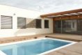 Topografie pozemku umožnila rozprostřít dvouramenný bungalov v jihozápadní orientaci, zády k ulici a s terasou otevřenou slunci. Mezi sousedními, patrovými domy působí stavba jako solitér, který – i když není právě malý – z ulice není téměř vidět a okolní zástavbu nijak nenarušuje. Pragmatické zónování domu směřuje do dvou částí. Od severu k jihu vybíhá rameno denní společenské zóny tedy obývací prostor spojený s kuchyní a jídelnou, linie východ-západ zahrnuje zónu klidovou v podobě ložnice, pokoje pro hosty, dětského pokoje a zázemí. Obě ramena pak svírají bazén za kamuflované asistence sedmadvacetimetrové terasy s patrnou snahou zajistit potřebné soukromí, pohodu a bezpečí obyvatelům domu.