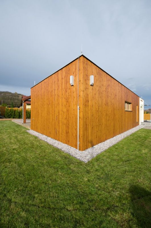 Dodavatel stavby se postaral i o oplocení pozemku, zpevněné plochy pro parkování a okapový chodník, ale i o internetovou přípojku a požární hlásič.