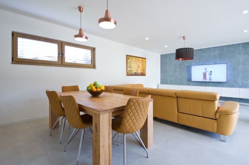 „Máme tak třeba trochu jinak rozložené místnosti klidové části nebo strop zvýšený na 260 centimetrů a dveře na 210 centimetrů," upřesňuje individuální úpravy Jiří, majitel domu.