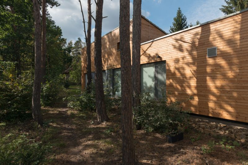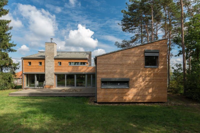 Na první pohled zaujme svým rázným tvaroslovím. Jako celek se smíšeným lesem v těsné blízkosti skutečně působí jako usedlost. Rozhodně však ne z minulého století. Snoubí tradiční představu o bydlení na vesnici s novodobým komfortem a estetikou. Co jí říkáte?
