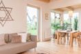 Interiérové řešení je také podle našich idejí. Součástí plánování dispozice bylo místo pro rostliny. Jsou to velké solitérní kousky, které vyžadují dostatek prostoru. Svoje místo mají hlavně v jídelně, ty menší pak na policích v chodbě. Kytky prostor jedinečně zabydlí, takže pak lze mít minimum nábytku.