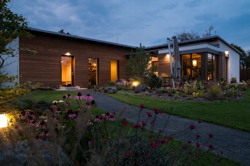 Vyrostli jsme oba v domě, takže víme, co nám vyhovovalo a naopak vadilo. Věděli jsme, že chceme bungalov, hodně zapuštěný do zahrady. A taky přístup do zahrady odkudkoli z domu, abychom s ní během celého roku neztráceli kontakt. Chtěli jsme co nejvíce prosklený a otevřený dům. Mimo jiné proto, že máme mnoho pokojových rostlin.