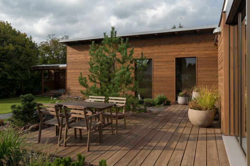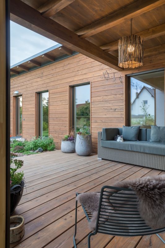 Dřevostavba je příjemná, teplá a dřevo je nám blízké. Je to materiál, který se neokouká a velmi příjemně se v něm bydlí. Nic není studené. I když je venku zima, zatopíte v kamnech a do půl hodiny je zde teplo. V létě tu díky venkovním žaluziím zůstává chládek, zvlášť když jsme důslední a nepouštíme dovnitř teplý vzduch.