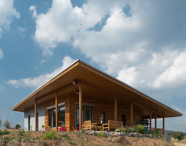 Konstrukční systém: přízemní dřevostavba z fošinkové konstrukce, podlaha a střecha z I nosníků