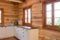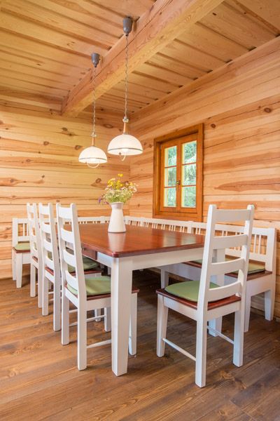 Matka majitele, paní Míla, má k domu velmi osobní vztah. Zajišťovala totiž stavební dozor a další profese související se stavbou a dá se říci, že zde ví o každém hřebíčku či třísce. „Roubenka je z borového vysušeného dřeva," vysvětluje, „je obydlená již druhý rok a skoro nemění rozměry. Když jsme hledali dodavatele, byla důležitým kritériem právě možnost dodání vysušeného dřeva, protože to téměř nesedá a příliš nepracuje. V místě, kde se masivní dřevěná část stýká se zděnou, byla ponechána dvoucentimetrová dilatační mezera, která dnes už téměř zmizela."