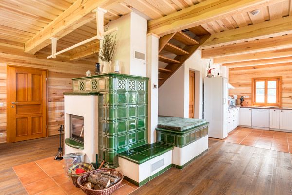 Z přízemí do horního podlaží jsou instalovány teplovzdušné rozvody. Vzduch stoupá nezávisle bez využití ventilátorů do místností v patře a kamna bez problému vytopí celý dům. Tam, kde je dlažba, je instalováno elektrické podlahové topení.