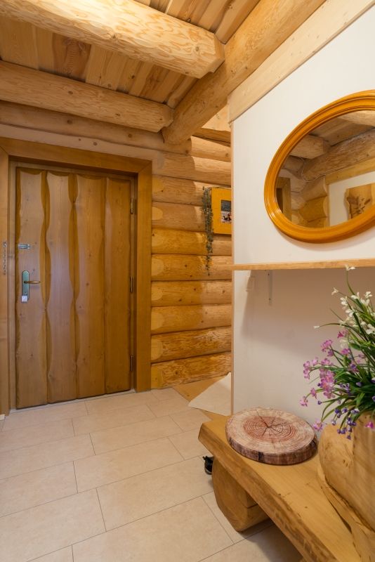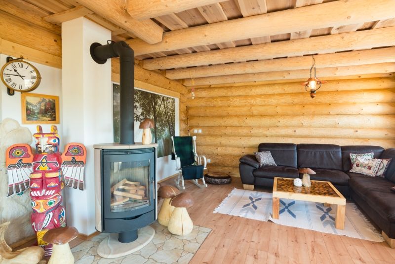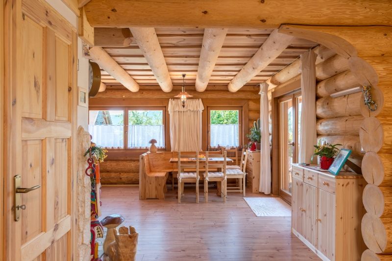 Konstrukční systém: srubová stavba z kulatin o průměru 35 cm, podkroví sendvičová zateplená stěna