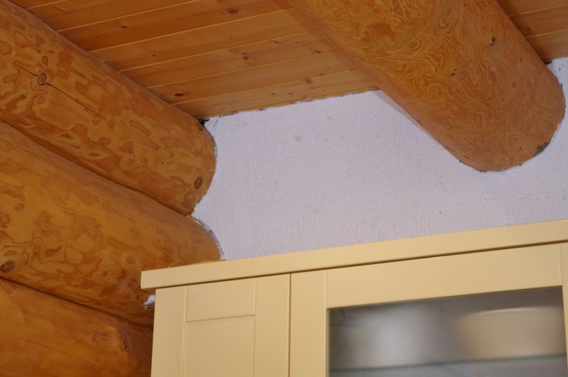 Srub je postaven se syrového smrkového dřeva, na sedání byli manželé připraveni. „Celá stavba sedala, praskala, v noci jsme to slyšeli, občas nás to probudilo. Ale to k syrovému dřevu patří, není to žádná překážka v bydlení. Když je člověk šikovný, udělá si potřebné úpravy sám, není to nic těžkého. Protože zde vanou silné větry, zatmelili jsme také spáry mezi kuláči." Na první pohled složitě vypadá také napojení zděné příčky na srubovou stěnu v kuchyni. „Původně napojená nebyla," vysvětluje Sergej, „napojili jsme ji až před dvěma roky. Osm let tam byl vzduchový prostor zakrytý lištou, čekali jsme, až sedání skončí. Nejvíce sedal srub první tři roky, pak už sice méně, ale raději jsme ještě počkali. Ale v rozích je stejně vidět, že stavba pracuje – dýchá, mikroprasklinky tu vždy budou. Ale to podle nás ke dřevu patří."