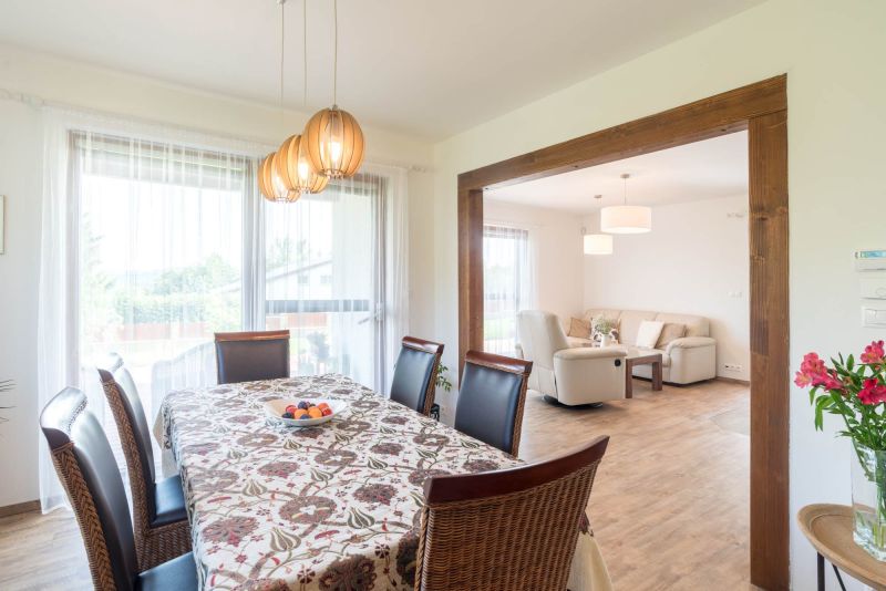 Následovala návštěva jednoho z referenčních domů. „Ten nám ale přišel moc velký," říká Tomáš. „Požádali jsme tedy, zda by šel projekt předělat podle našich individuálních potřeb, a k našemu překvapení s tím firma neměla problém. Ujistila nás tak v tom, že jsme zvolili dobrého dodavatele. Dostali jsme pak několik návrhů, které jsme ještě párkrát v detailech upravovali, jako třeba posun vnitřní stěny, umístění spíže nebo zvětšení zádveří. Když jsme váhali, jaký materiál nebo řešení zvolit, vždycky nám poradili a vysvětlili srozumitelně, proč to ano a tohle už ne. Celkově jsme byli opravdu spokojeni, a protože jednání firmy bylo vstřícné a férové, dohodli jsme se na dodávce na klíč."