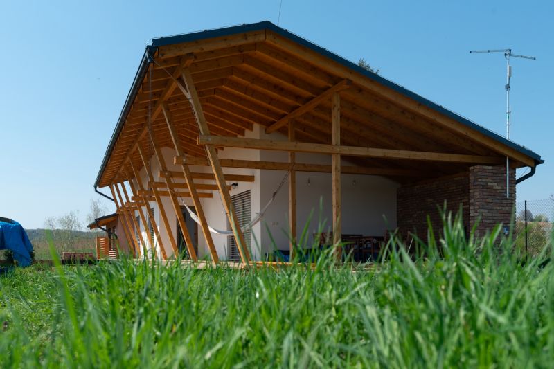 Nahlížení na různé technologie výstavby z profesního hlediska má jednu velkou výhodu – máte více informací, máte srovnání a nepodléháte mýtům. Řádně navržená a realizovaná dřevostavba má velmi dlouhou životnost a ve výsledku každý dům musí splňovat stejné, normou dané parametry, ať už jde o dům z cihel nebo ze dřeva. Dřevostavba je tedy hlavně o pocitu, a nám bylo dřevo příjemnější. Dřevostavbu jsme nicméně volili i z důvodu složitosti stavby a jejího umístění v terénu. Konstrukčně bylo jednodušší a cenově výhodnější realizovat stavbu jako dřevostavbu na pilotách.
