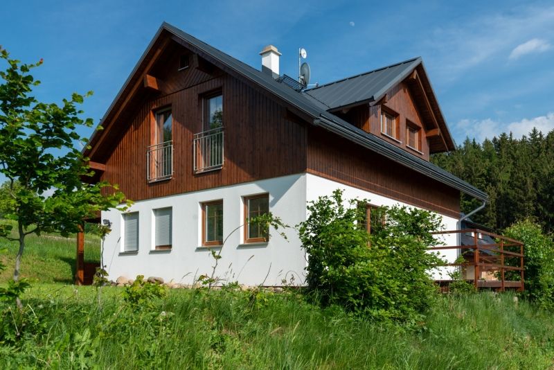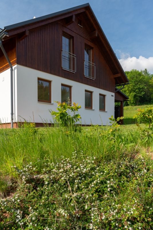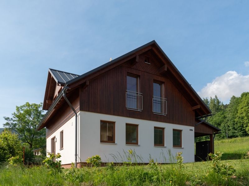 Útulná usedlost v krkonošské náruči na první pohled splývá se zdejší architekturou. Při bližším zkoumání ovšem nezapře dům z moderních materiálů. Vypadá stále jako nový, ale slouží již sedm let. Zažívá svoji první životní etapu, teprve v té další totiž bude stálým příbytkem svým majitelům.