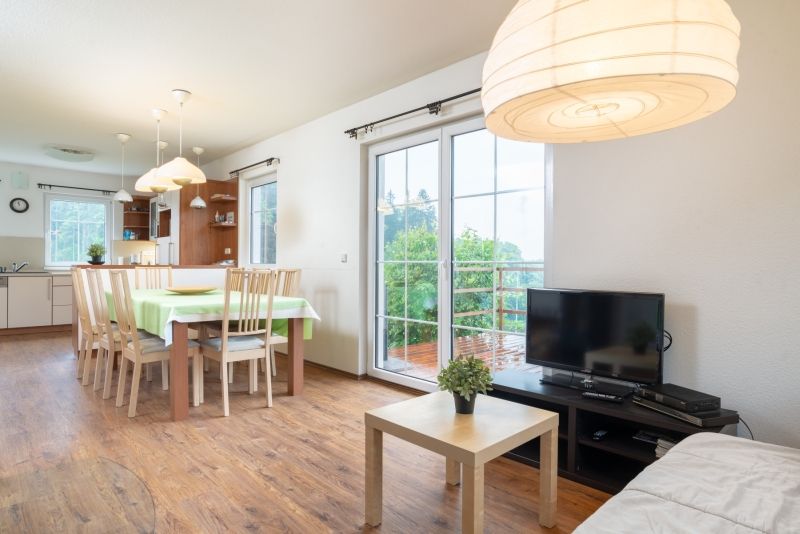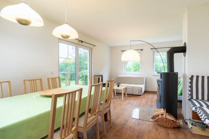 Velká kuchyně a jídelní stůl mají pojmout velkou rodinu. Mnoho navíc není třeba, proto ohnisko společného setkávání zaujímá větší podlažní plochu než samotný obývací pokoj. Dispoziční jednoduchost vládne celému domu. Není třeba složitostí. Obytnou přízemní část s obývacím pokojem, kuchyní, jídelnou, ložnicí a zázemím doplňují v horním patře dva prostorné pokoje se samostatnými koupelnami. Ideální nejen pro režim pronájmu, ale také pro rodinné návštěvy, kdy má každý svoje soukromí.