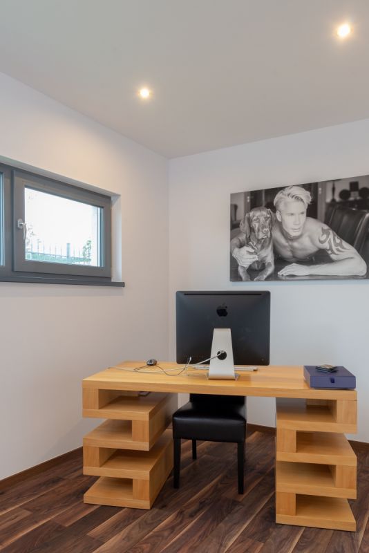 Velmi se mi líbí styl funkcionalistických brněnských vil. Již během první konzultace s architektem jsem přišel s pár vizualizacemi pro lepší představu mé vize domu a již počáteční výstupy mi lahodily. Přál jsem si, aby nový dům působil vzdušně, lehce a minimalisticky. V jeho jádru měla být prostorná obytná místnost – spojení relaxační zóny, jídelny a kuchyně. První patro mělo být pouze pro mne a ne pro hosty, proto je v přízemí hostinský pokoj se vstupem k bazénu a na zahradu. Bezbariérový, stejně jako vstup a dolní koupelna. Pracovna v horním patře se mi v předchozím bydlení neosvědčila, proto tentokrát zůstala v přízemí. Horní patro tak slouží pouze odpočinku. Důležité pro mne bylo mít terasu s bazénem, kam vejdu suchou nohou přímo z interiéru, aniž bych musel přes trávník. Do budoucna bude zahrada takovou útulnou soukromou oázou a spolu s přízemím to také bude místo pro veškeré společenské dění v domě.