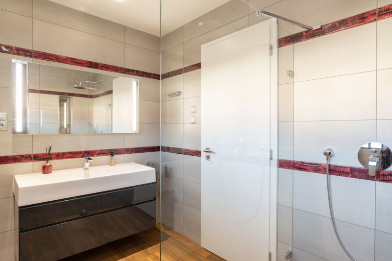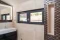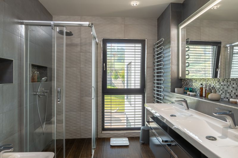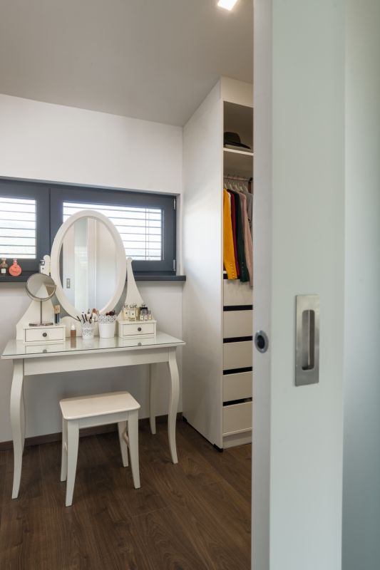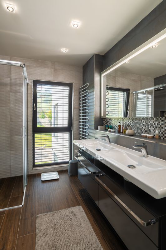 Prostorům provozního zázemí věnovala majitelka stejnou důležitost jako těm pobytovým. V domě je proto nemalé zádveří se šatnou, čtyři koupelny, další dvě velké šatny, prádelna a spíž, přičemž oko designéra je patrné jak hned za vstupními dveřmi, tak v koupelnách.
