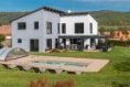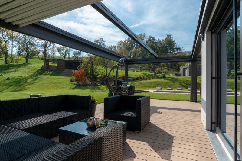 Podstatu jejího vlastního návrhu domu tvoří kombinace jednoduchého tvaru písmene L, praktické dispozice a elegantního designu. Funkční schéma provozního prostoru zahrnuje dvanáct místností v přízemí a deset v patře. V takovém „hradu" je správný odhad jejich velikosti, počtu, vzájemných proporcí a návaznosti pro bezkolizní provoz zásadní. Ve velkém a členitém domě se sice dá těžko vyhnout komunikačním spojkám, které stavbu prodraží, nicméně vždy záleží na tom, co vyhovuje dané rodině a co je pro ni důležitější.