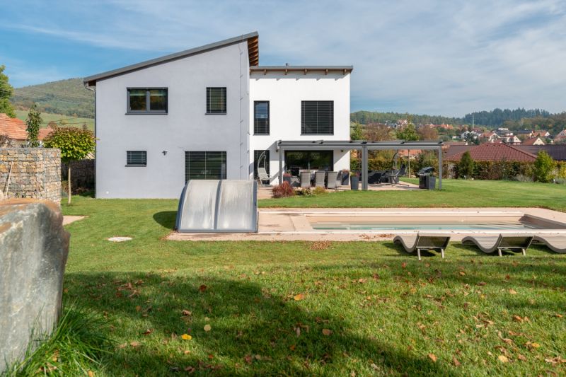 Před sto lety měli stavebníci na vesnici jednoduché rozhodování, jak bude jejich dům vypadat s ohledem na účelnost hospodářského života. Tragédií století televizního je podprahový efekt sledovaných seriálů, kdy budoucí stavebník téměř denně pije motivační koktejl mnoha vzorů od Ulice přes Panelák po Ranč u Zelené sedmy a který zanechá v šejkru jeho hlavy leckdy žalostné stigma. Majitelka tohoto domu musí však mít jako interiérová designérka hlavu čistou. Věděla proto jasně, kam dům usadit, čím ho naplnit a jak jej obklopit.
