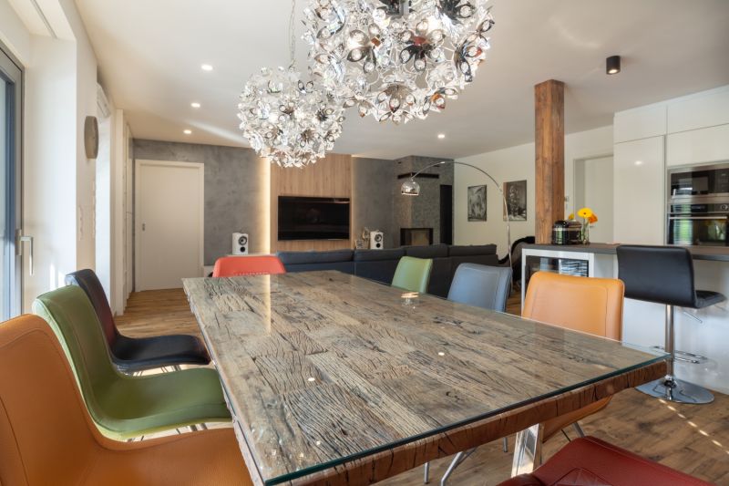 D.J.: Vidím to i v masivním jídelním stole a různobarevných židlích. To mě opravdu dostalo... Kde takové kousky hledat?