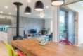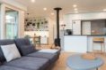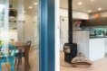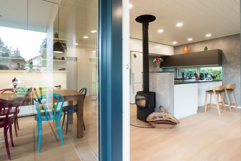 Dům vytápí několik sálavých panelů a komfort dotváří podlahové topení v koupelnách spolu s topnými žebříky. „Návrhově panelů vycházelo více, ale ze zkušeností uživatelů jsme věděli, že jich není potřeba tolik. Praxe ukázala, že je to tak." Pro atmosféru v zimě jsou v obývacím pokoji instalována ještě kamínka s malým výkonem.