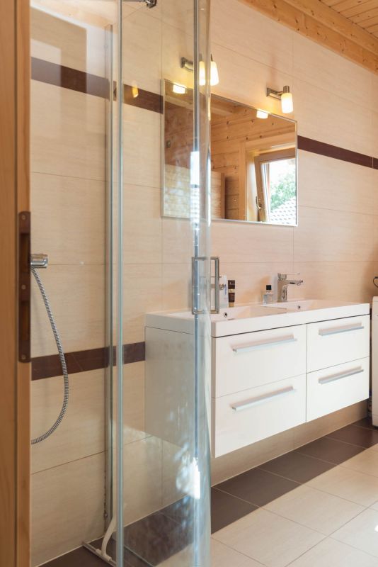Ošetření stěn: interiér – transparentní vodou ředitelný lak, exteriér – olejová lazura