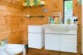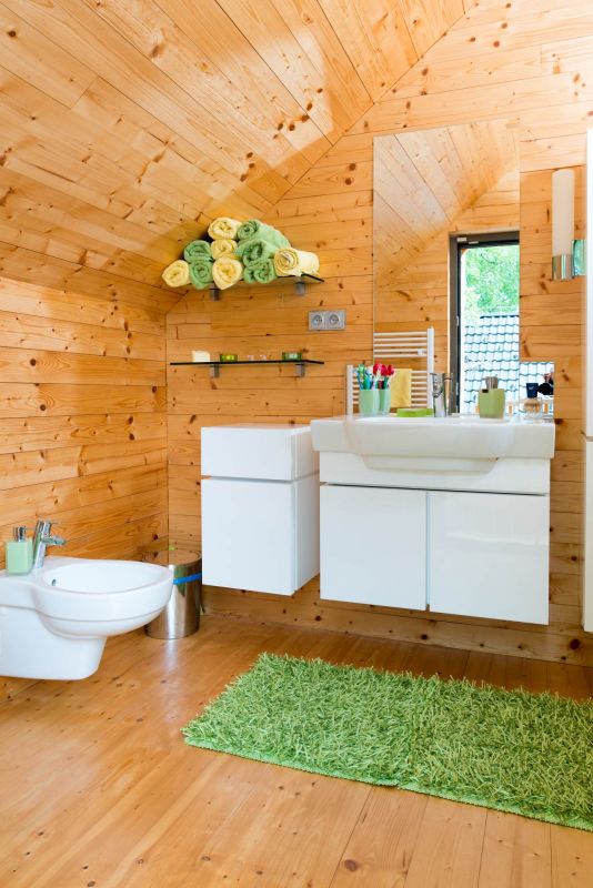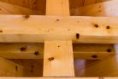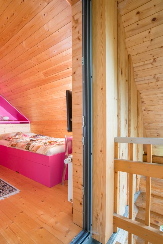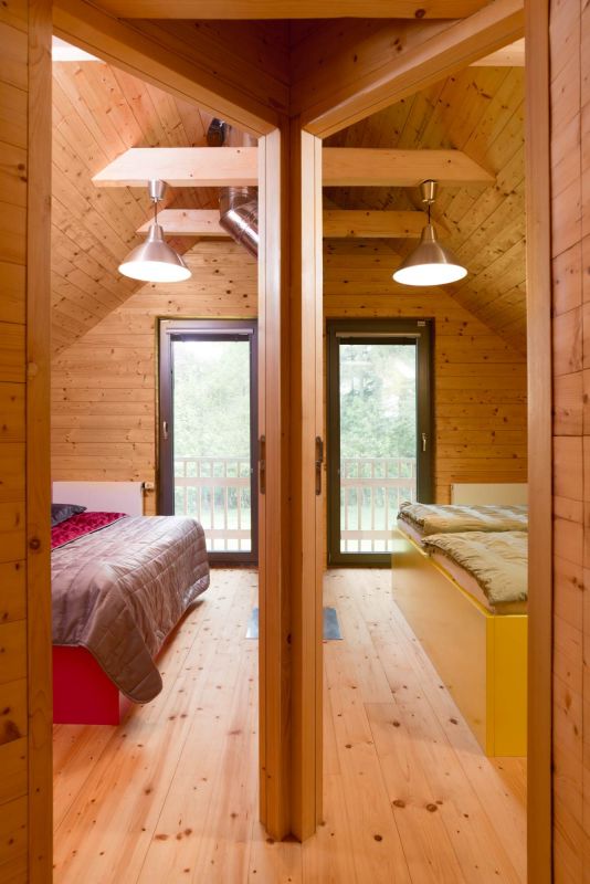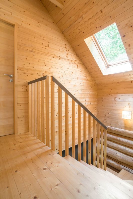Velká pozornost byla věnována nátěru stavby. Není divu, ten vlastně nahrazuje jiné ochranné kabáty domu – obklady či omítku, musí tedy vydržet mnoho. I zde se rozvaha a pečlivost vyplatily. „Použili jsme čiré nátěry, které zachovávají nejvíce původní strukturu a barvu dřeva. Nanášejí se ve třech vrstvách – první je impregnace a další dva jsou ochrana proti UV záření. My jsme si první nátěr dělali sami s partou kamarádů částečně i proto, že jsme chtěli, aby byl udělán opravdu precizně, aby vydržel. Musím říci, že to bylo „zábavné martyrium", natírali jsme týden v šesti lidech a od té doby víme, že už bychom to nechtěli absolvovat znovu, a opravdu zodpovědně zacelujeme každou chybičku v nátěru. Standardně by se měl nátěr obnovovat vždy po třech až pěti letech, my jsme stavbu natřeli kompletně jednou a od té doby stačí dílčí opravy již mnoho let, takže dnes bych to s klidným svědomím doporučil i klientovi. My jsme to tady odzkoušeli v extrémních podmínkách – jsou tu velké výkyvy teplot, hodně tu prší. Radost máme i z toho že si srub zachovává stále stejnou barvu, nevybledl ani neztmavl."