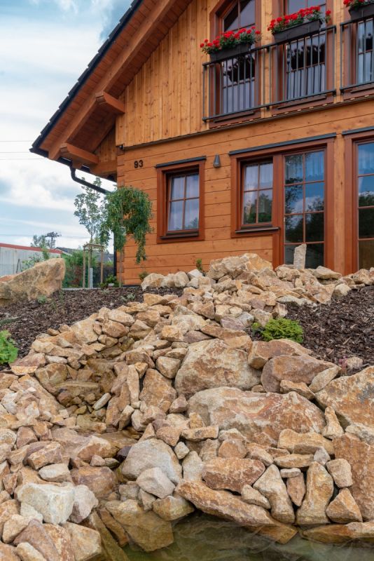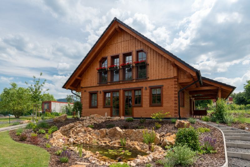 Konstrukční systém: roubený, lepený hranol, druh dřeva – alpský smrk