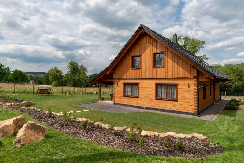Pozemek hledali rok a půl, nebylo to tak jednoduché, pro roubenku potřebovali větší rozlohu, protože dřevostavba vyžaduje prostor, a i lokalita byla důležitá. „Pro mě by byla ideální samota," podotýká Honza, „ale to pro rodinu není vhodné. Do Hradiště jsme přijeli kvůli jinému pozemku, ten však nebyl ke stavbě vhodný. Obec nám nabídla tento. Jsou na něm sice věcná břemena – stožár elektrického vedení a kanalizace, ale to se nakonec ukázalo jako výhoda, nemuseli jsme vést přípojky daleko. Místo se nám stále velmi líbí, z jedné strany máme fantastické sousedy a z druhé ovocný sad."
